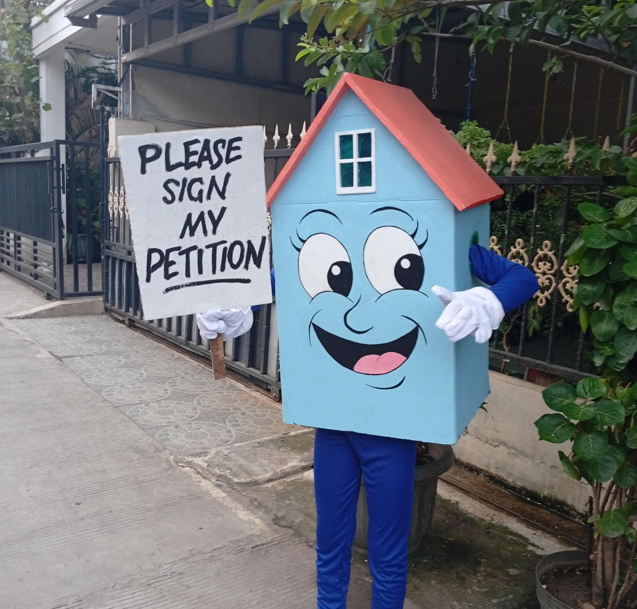I'm a friendly mascot working for HouseLottery. It's a fun way to help the homeless and those on long waiting lists to get housed. Social housing needs to be built, and we're going to do it, with your help, of course!