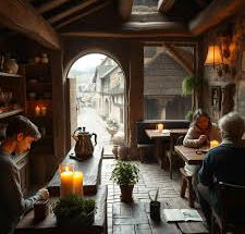 On the ground floor, a coffee bar open to the public with historical artifacts on display of 12th century trade items, pictures, etc.